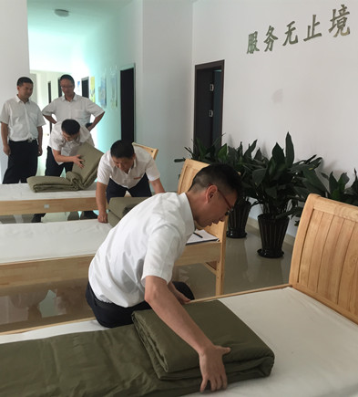 圖為疊被子比賽現(xiàn)場(chǎng)