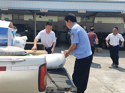 7月25日上午,臺州南收費所負責人帶領該所行政一行4人到院橋派出所及交警隊,為他們送去綠豆、紅棗、涼茶等消暑物品。