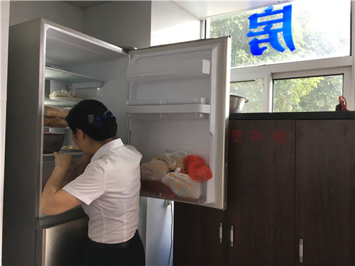 圖為正在檢查冰箱衛生