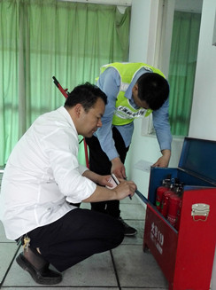 圖為檢查現(xiàn)場 該所副所長應(yīng)錦清帶領(lǐng)隊員仔細(xì)檢查了南北配電房的機電設(shè)施,隨后對管理房的干粉滅火器、隧道內(nèi)的泡沫滅火器,配電房、中控室的二氧化碳滅火器進(jìn)行逐一檢查,查看每個滅火器的壓力值、出氣管有無彎折、堵塞、損傷,壓把和閥體等金屬件有無變形和銹蝕,是否還在使用年限之內(nèi)等等,并做好相應(yīng)的檢查記錄。 陳智慧