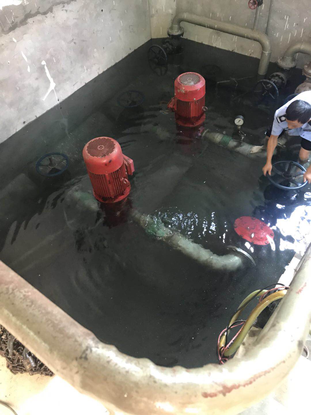圖為執勤隊員在關閉閥門 “看,應該是這里漏水了,有水暈在動。” “對,就是這里了。” “水馬上要沒到電機了,趕快關閉閥門,不然損失就大了?!?/span> 此時,陳旦平沒有多想,立即下水去關閉水泵閥門。池中有2號泵的高位水池閥門和2號泵的集水池閥門,每個泵各有兩個閥門。陳旦平在迅速關閉閥門后,由于集水池這邊地勢較低,慌忙中的他忘拿手機,手機被水浸到,他卻依舊埋頭于搶修。 據隊長李新波說,此次“水災”是北泵房2號泵的壓力表處水管漏水,原因是設備設施使用時間較長,水管陳舊銹蝕,抵不住水壓,導致水管開裂,引起漏水。 胡瑰華