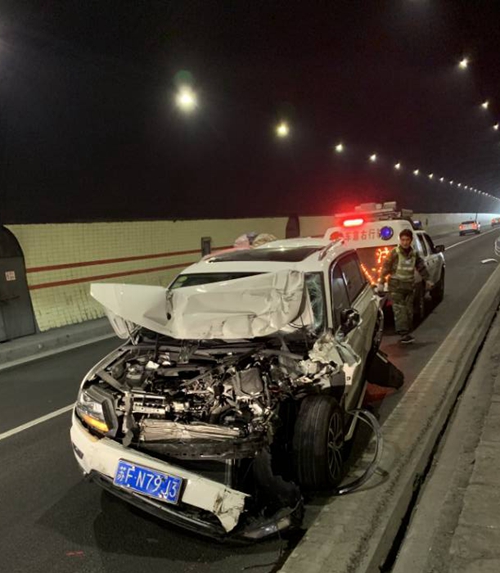 圖為事故現(xiàn)場 在很短的時間內(nèi),巡邏車就趕到現(xiàn)場。此時塘嶺隧道事故現(xiàn)場一片混亂,眾多車輛滯留。執(zhí)勤隊到達(dá)現(xiàn)場做好預(yù)警措施后,執(zhí)勤隊員勸離兩輛事故車駛往塘嶺隧道南廣場等候交警處理,引導(dǎo)擁堵車輛有序通行。巡邏車尾隨事故車輛,做好預(yù)警工作,緩慢駛向寧向隧道口。然而當(dāng)巡邏車行至寧向出口處,又有兩車發(fā)生追尾,被追尾車輛已是“體無完膚”,現(xiàn)場有大量的拋灑物,嚴(yán)重影響其他車輛通行,需拖車和清障車的救援,清障施救車輛也及時趕到,現(xiàn)場才恢復(fù)正常通車,此時距離第一起事故發(fā)生僅僅過去半個小時。 在此,臺州高速集團(tuán)溫馨提醒,雖然大家歸家心切,但是春運期間高速車流量大,車速快,行車過程中盡量保持安全車距,避免人員傷亡和財產(chǎn)損失。 陳旦平